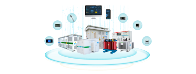 ①变压器智能测控终端:变压器内置温度、电流互感器等传感器,通过变压器智能测控终端,将温度的变化与线路电 流、电压的变化综合分析,并与高、低压侧主开关进行联动,实现变压器精准保护;